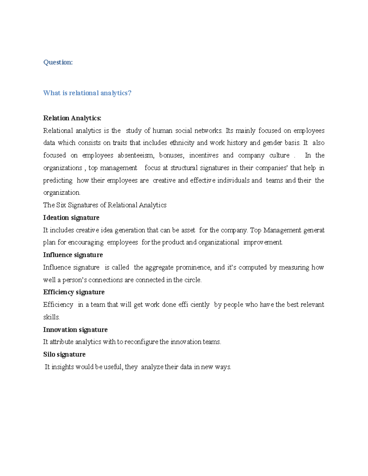 Relational Analytics - research analysis - Question: What is relational ...