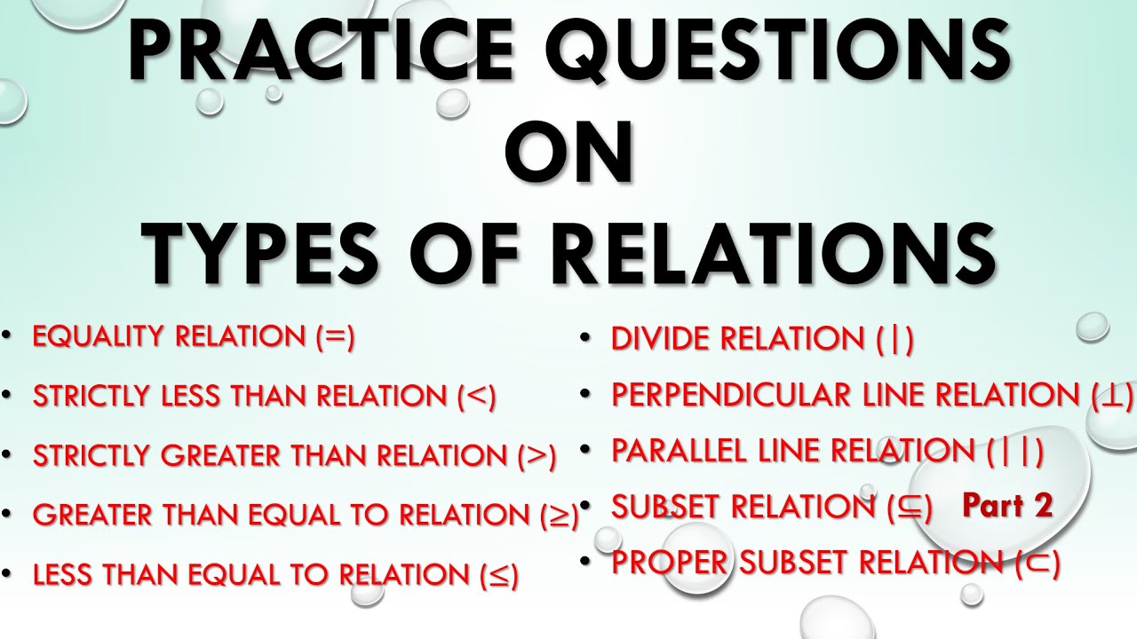 Practice Questions on Types of Relations with 10 Examples (Part 2 ...