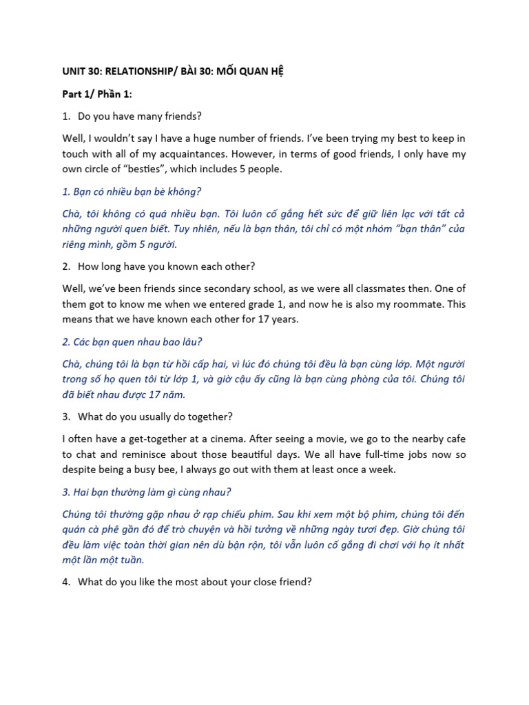 Relationship: Part 1-Style Questions | PDF