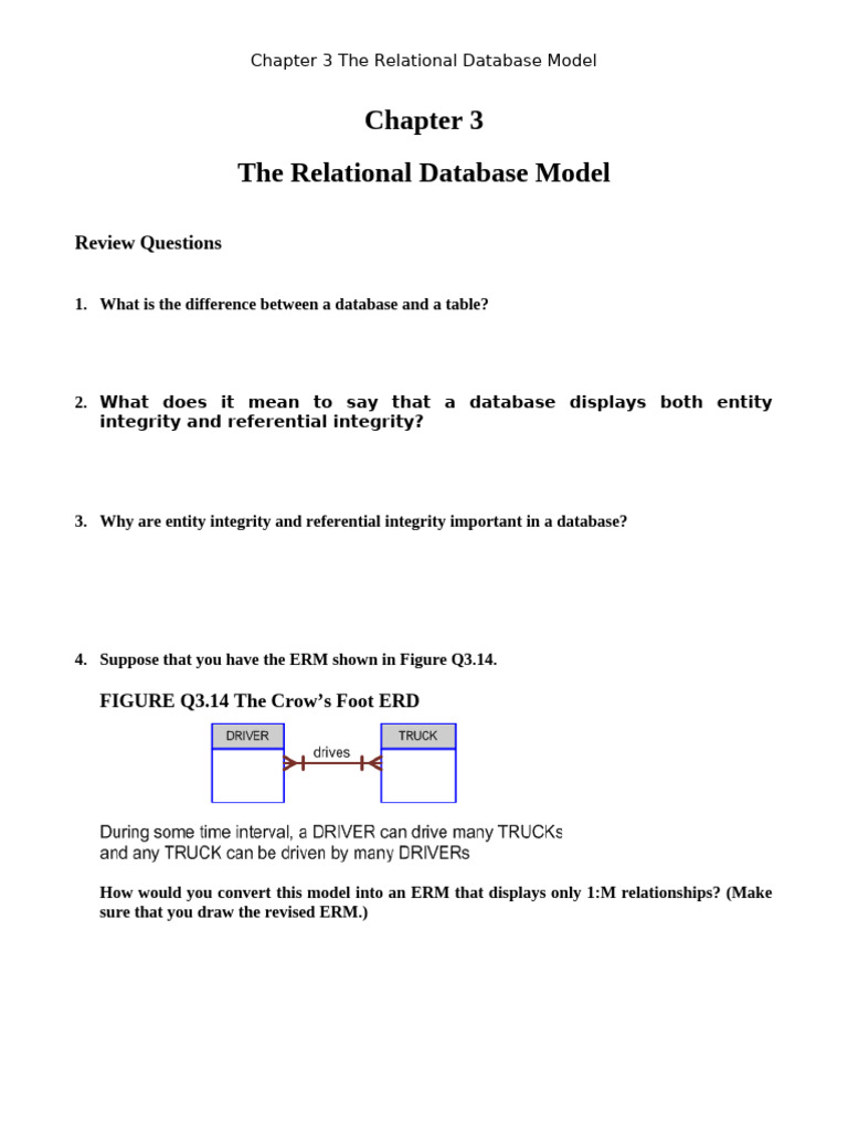 Questions and Answers On The Relational Model | PDF | Relational Model ...