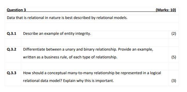 Solved (Marks: 10) Question 3 Data that is relational in | Chegg.com