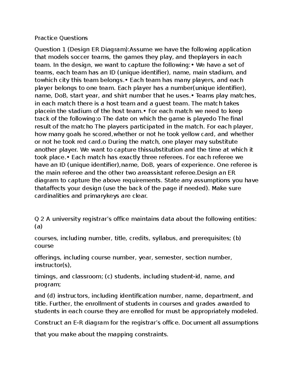 Practice Questions for ER Diagrams and Relational Algebra (CS101) - Studocu