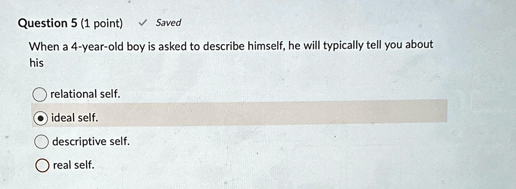 question 5 1 point saved when a 4 year old boy is asked to describe ...
