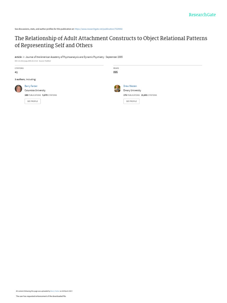 The Relationship of Adult Attachment Constructs To Object Relational ...
