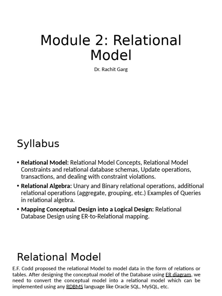BCS403 Syllabus - Module 2 (Relational Model) | PDF | Relational Model ...