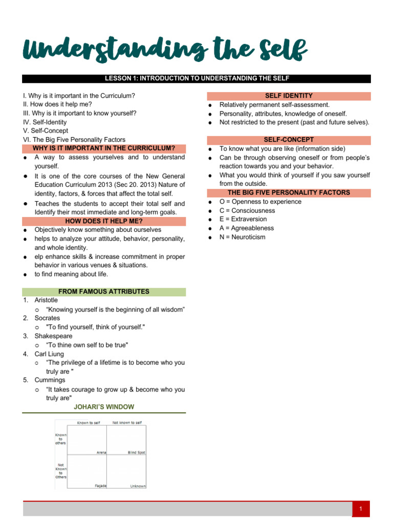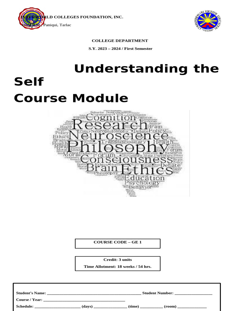 GE 1 - UNDERSTANDING THE SELF MODULE 1 - L1-L2.docx | Apuntes Inglés ...