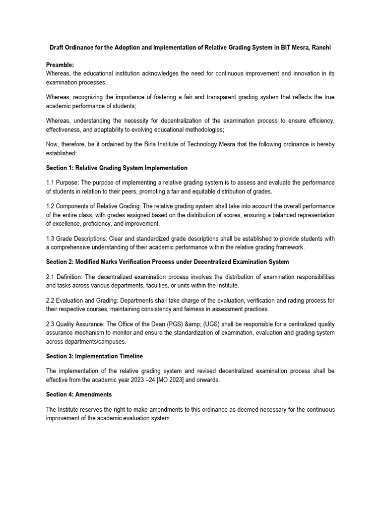 Relative Grading System in BIT Mesra, Ranchi | PDF | Evaluation