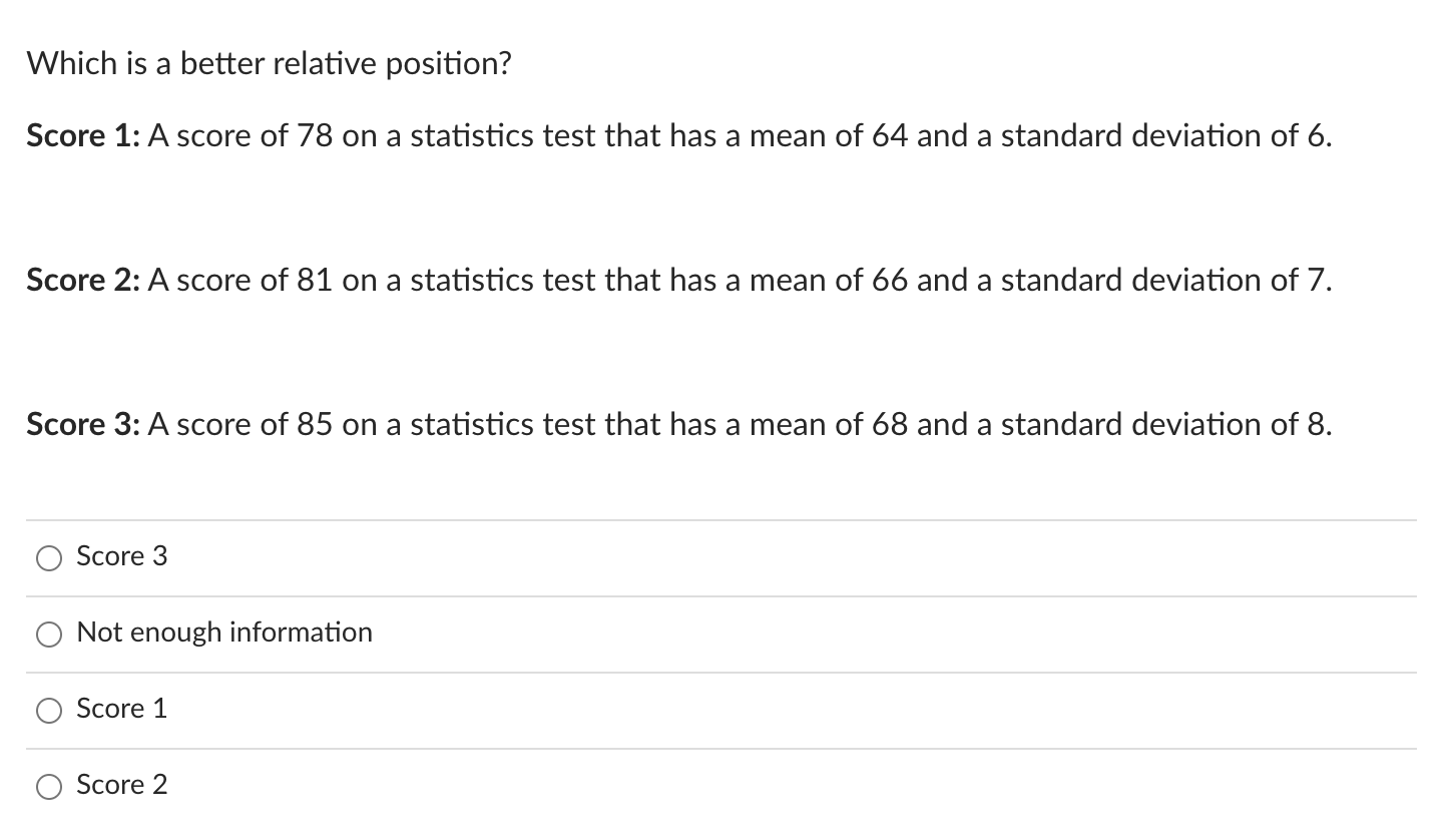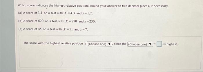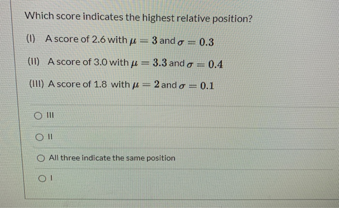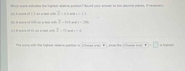 SOLVED: Which score indicates the highest relative position? a. A score ...