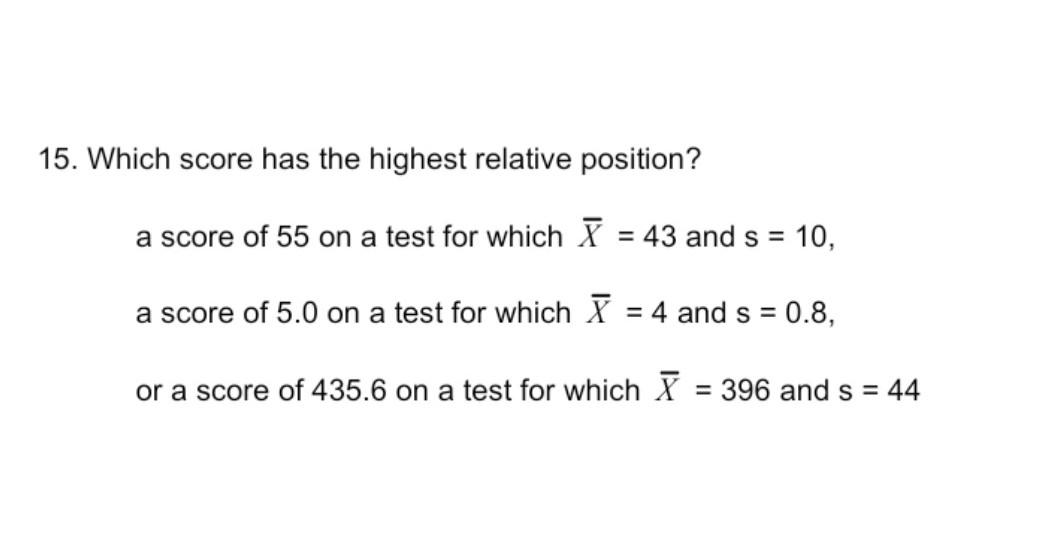 Solved 15. Which score has the highest relative position? a | Chegg.com