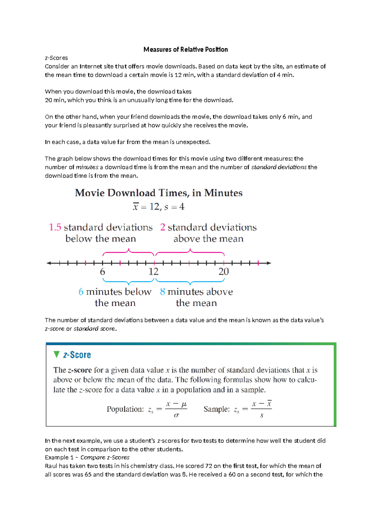 Statistical Analysis - Measures of Relative Position Notes (STAT101 ...