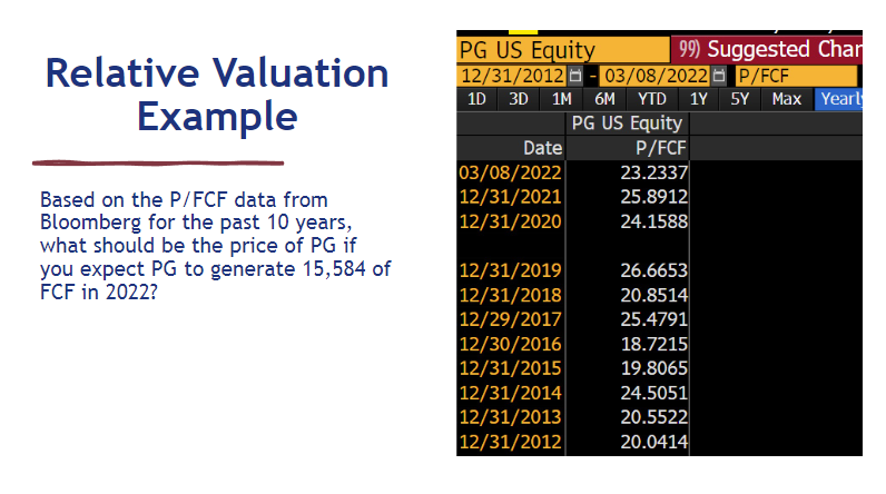 Relative Valuation Example Based on the P/FCF data | Chegg.com