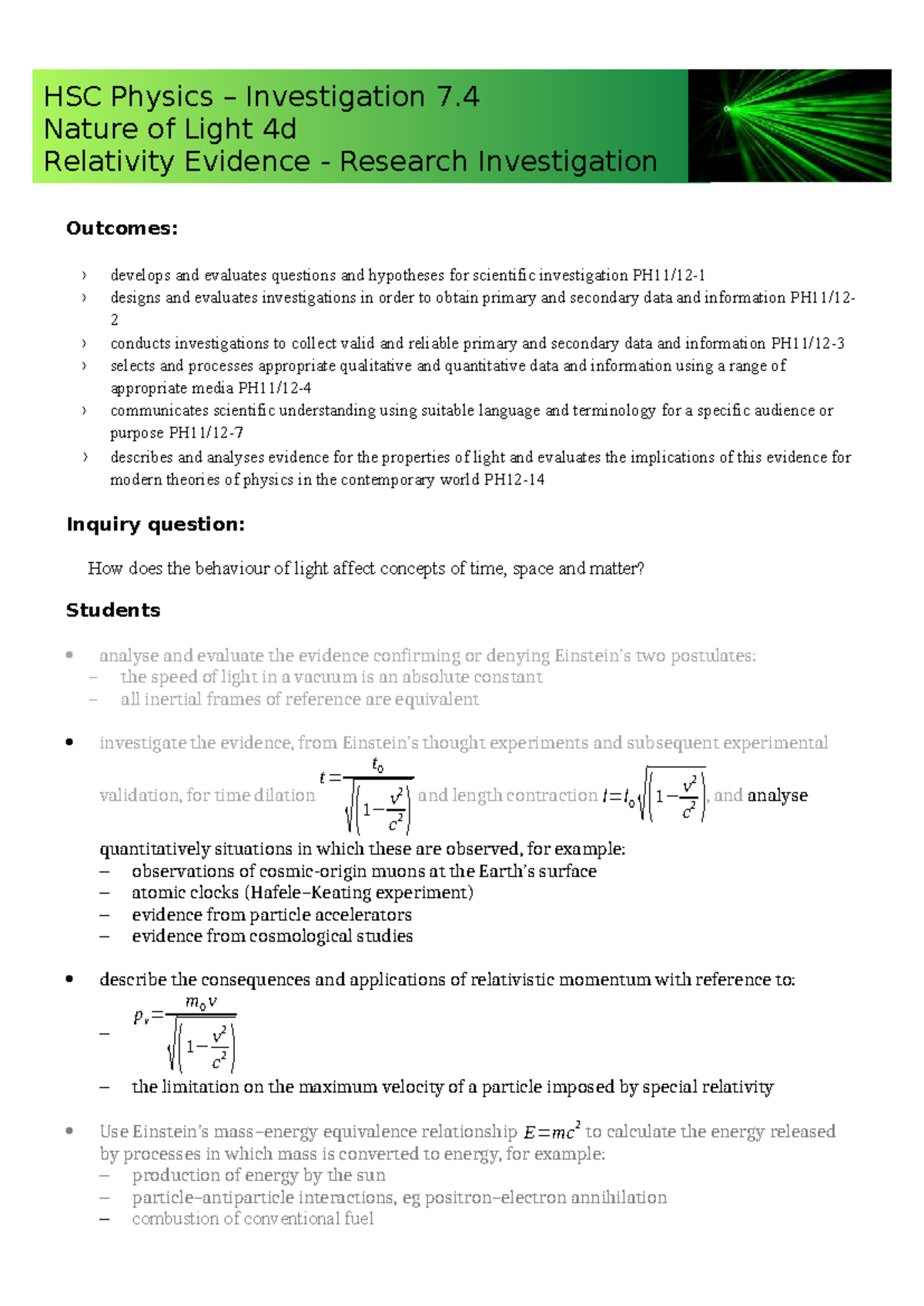 ACSPH131 Light and Special Relativity: Concepts and Applications - Studocu