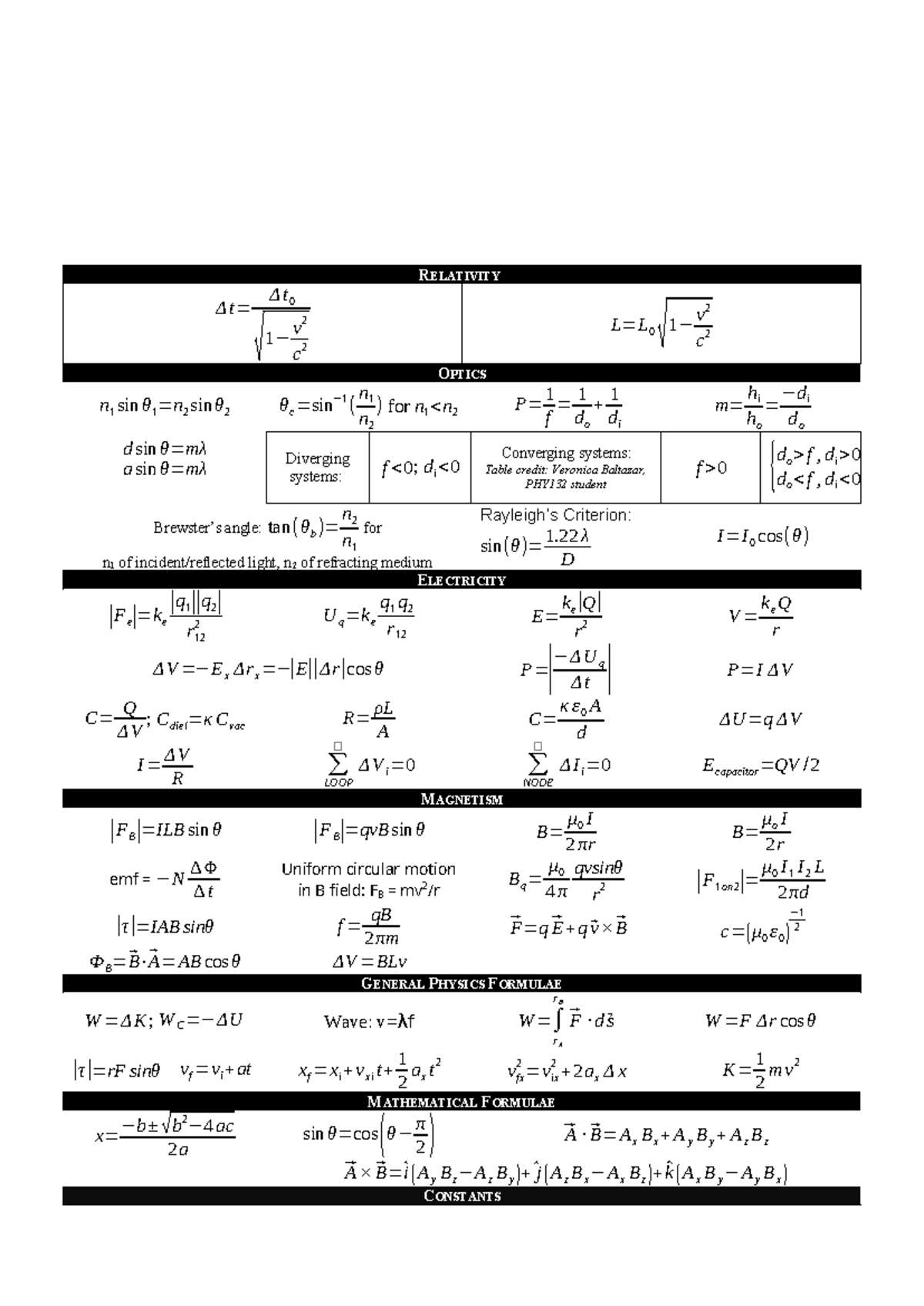 Final Exam Study Guide for PHY132: Relativity, Optics, Electricity, and ...