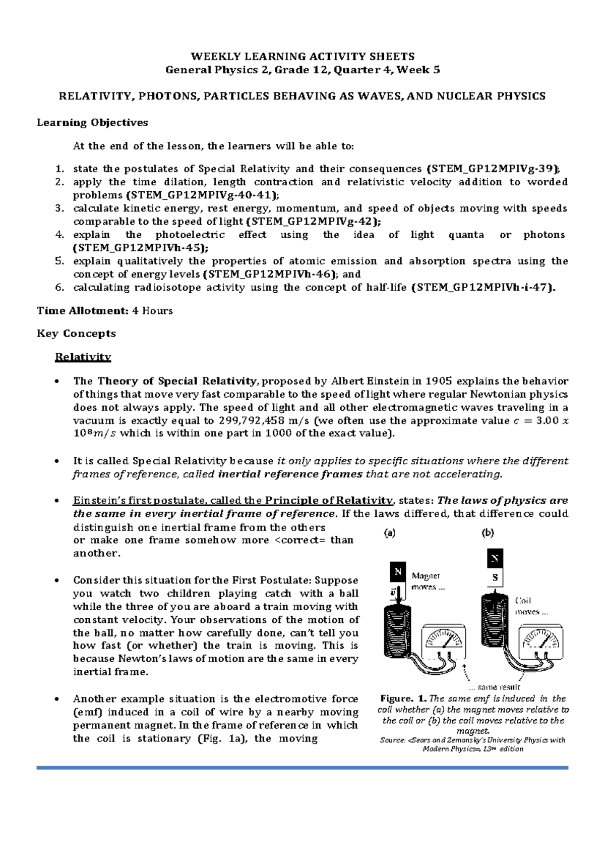 P6 General Physics 2: Weekly Learning Activity on Relativity & Nuclear ...