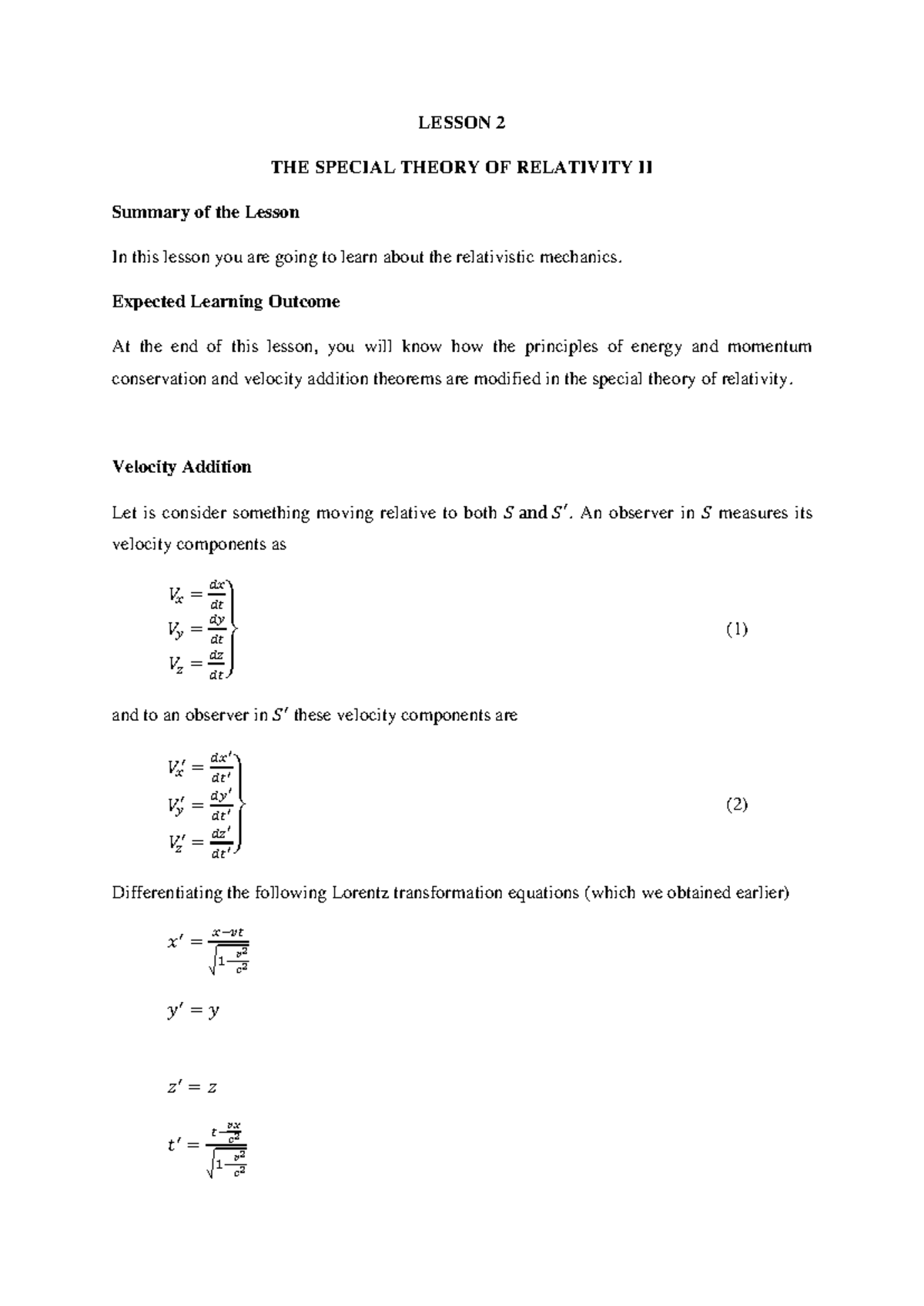 SPH202 - Lesson 2: Special Theory of Relativity II Summary - Studocu