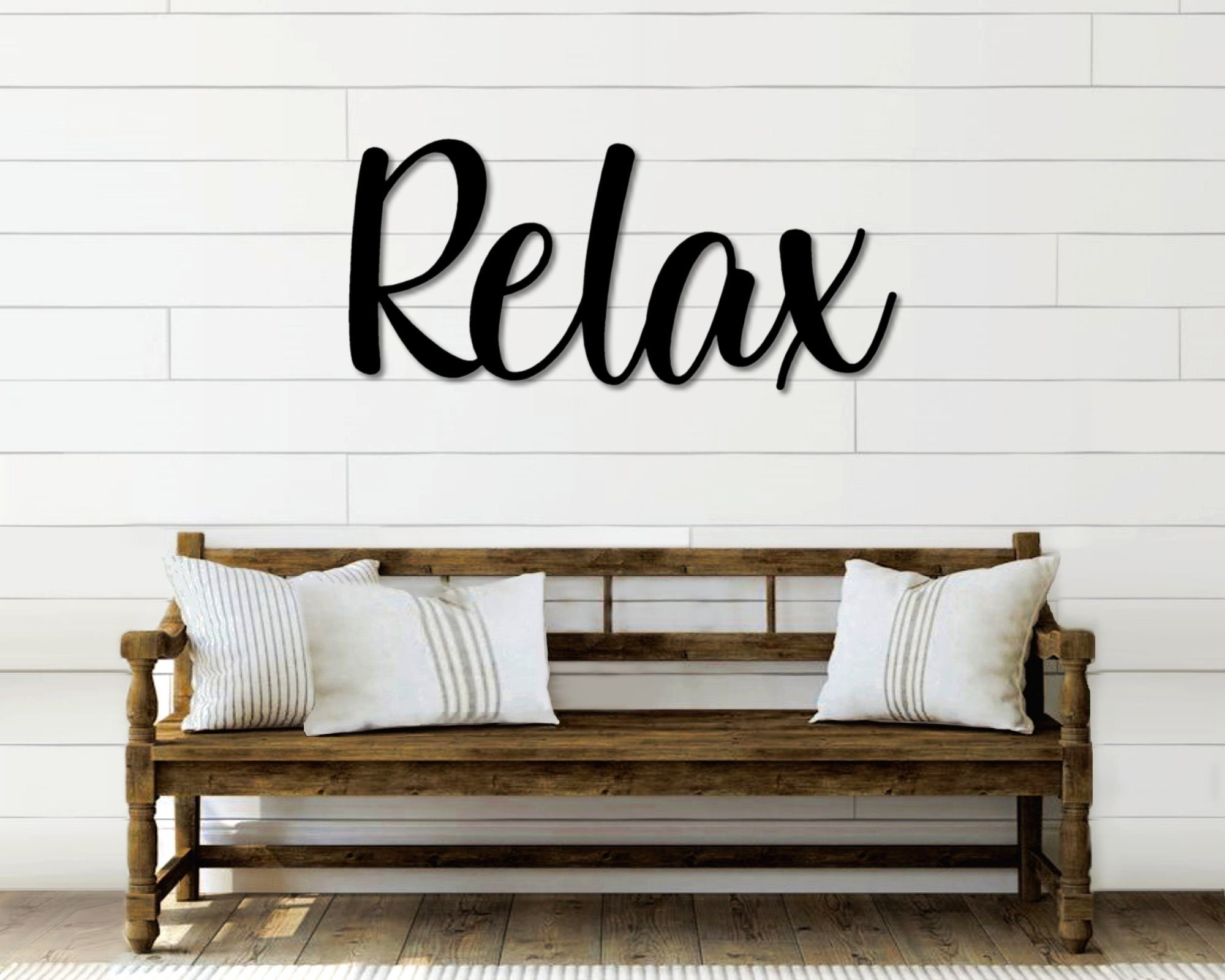 Relax metal word art decor, relax cursive wall hanging, Relax ...