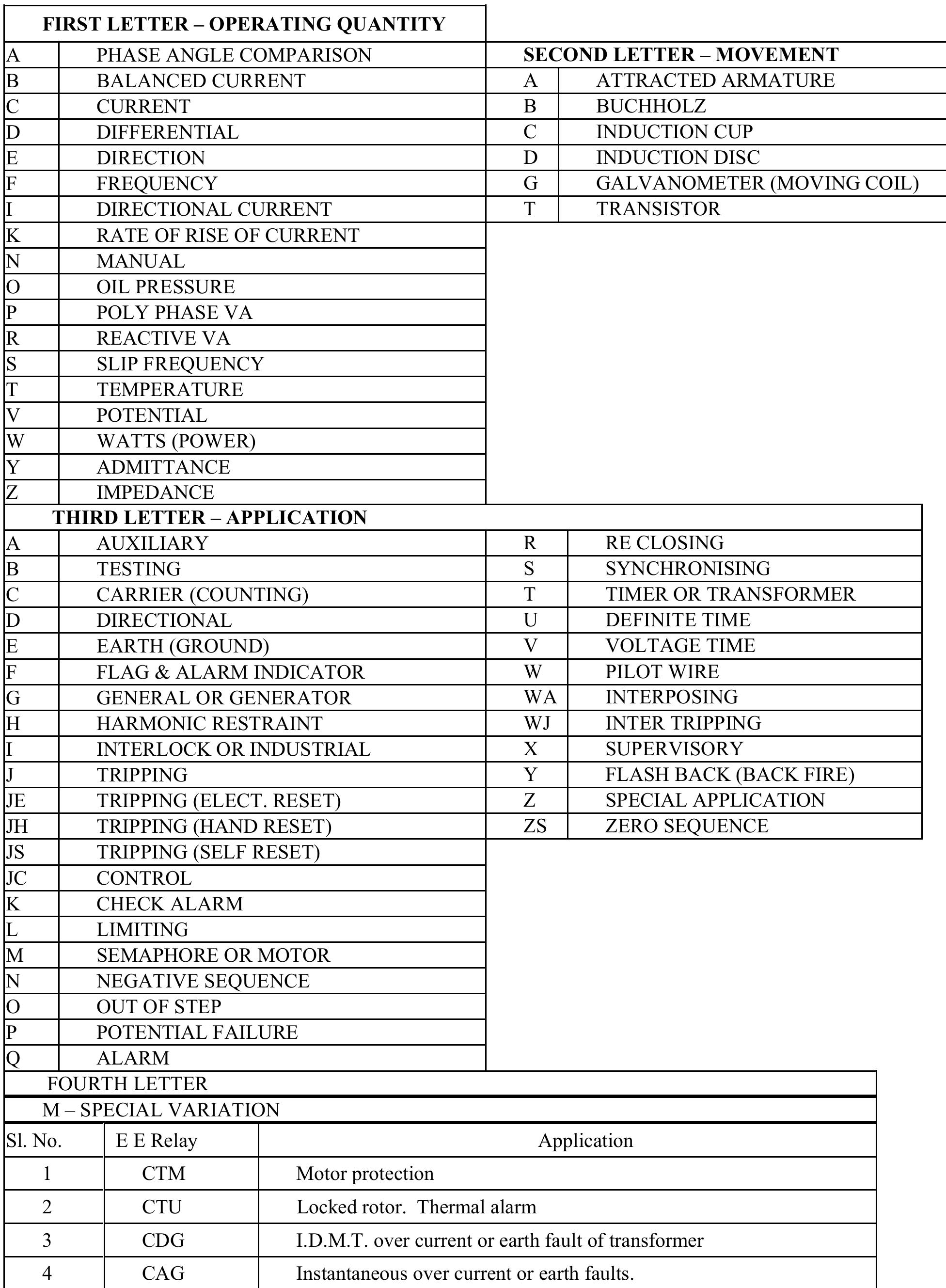 Electrical Protection Ansi Code Table at Harvey Rosas blog