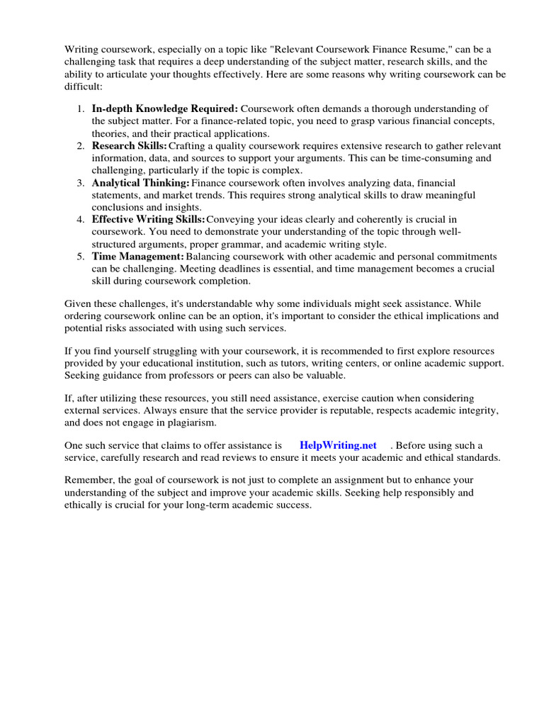 Relevant Coursework Finance Resume | PDF | Résumé | Understanding
