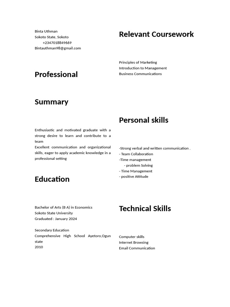 Relevant Coursework Resume | PDF | Résumé | Recruitment