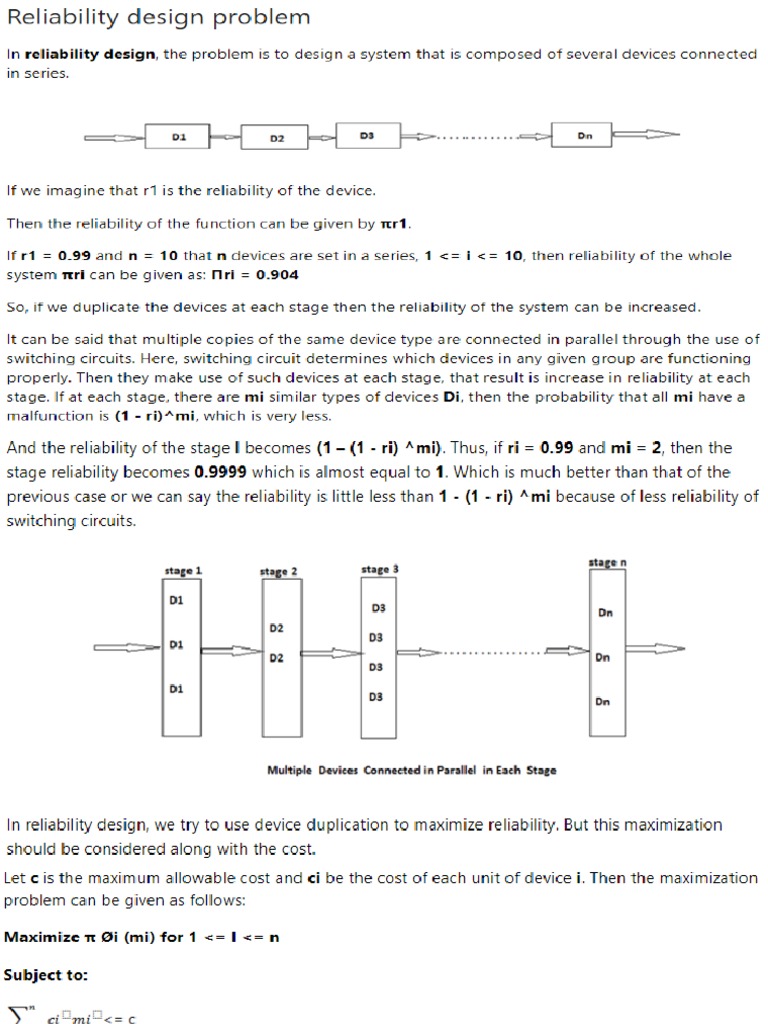 What Is The Concept Of Reliability Design In Dynamic Programming