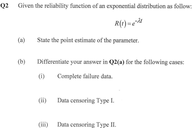Solved Q2 Given the reliability function of an exponential | Chegg.com
