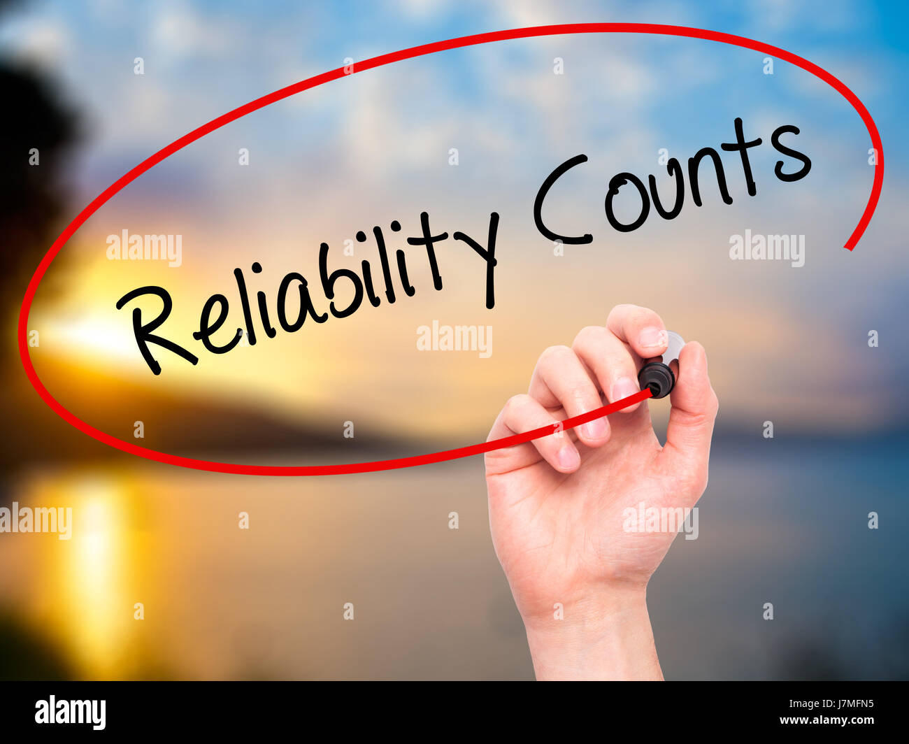 Man Hand writing Reliability Counts with black marker on visual screen ...