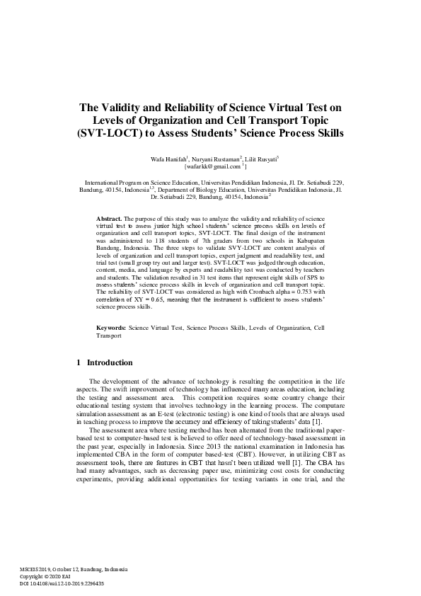 (PDF) The Validity and Reliability of Science Virtual Test on Levels of ...