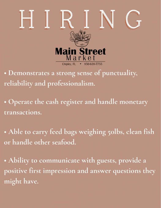 Main Street Market in Downtown Chipley, Florida is Seeking Reliable ...