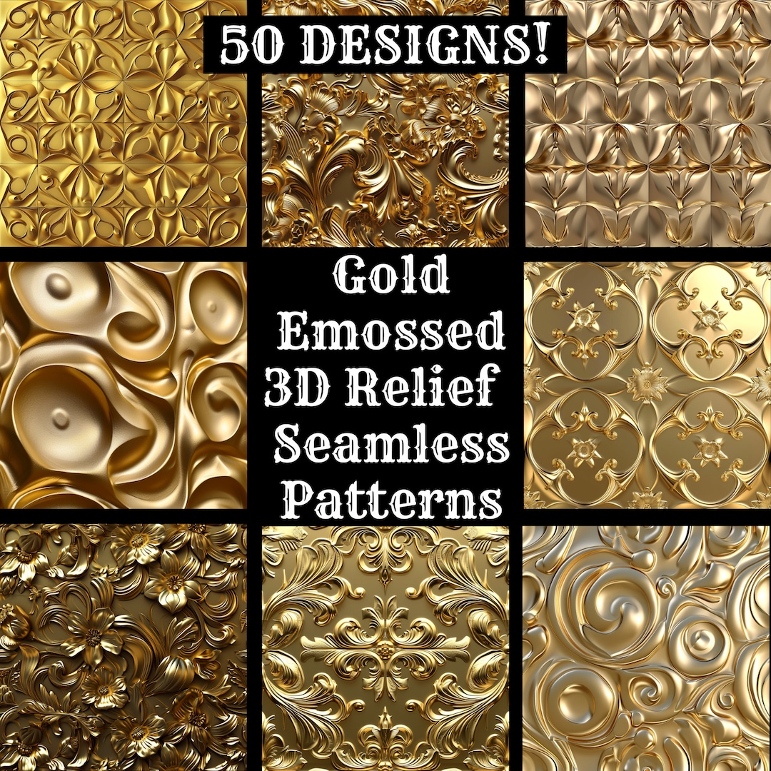 Gold Embossed 3D Relief Seamless Patterns: Digital Paper (PNG) - Etsy