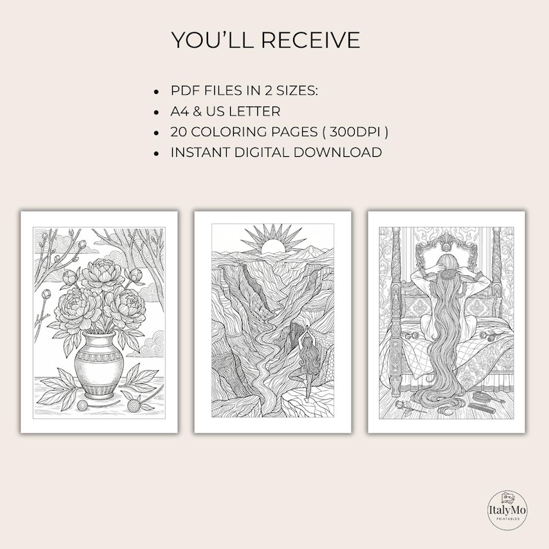 Relaxing Adult Coloring Book for Stress Relief, 20 Printable Art ...