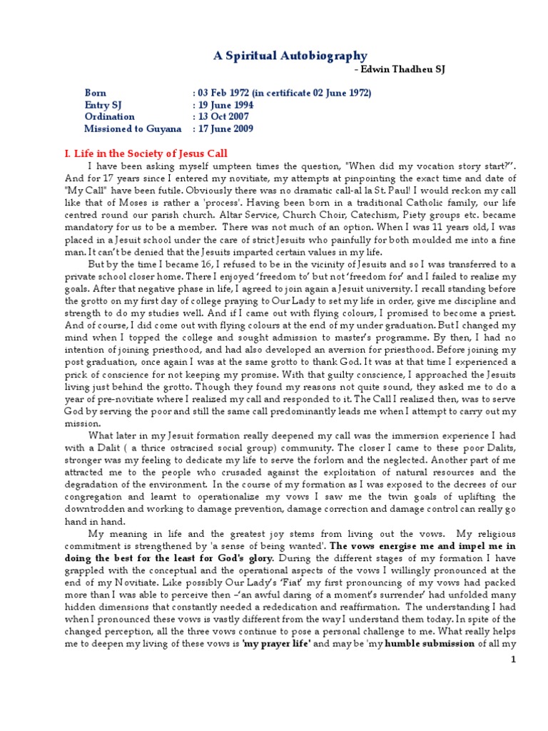 A Spiritual Autobiography - Edwin SJ | PDF | Retreat (Spiritual ...