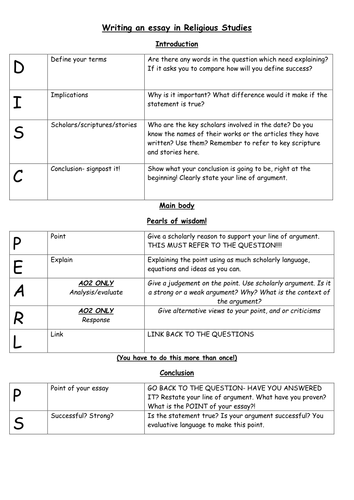 Religious Studies A level essay writing frame and structure | Teaching ...