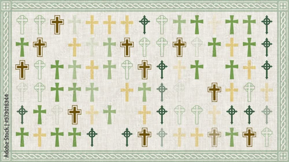 Vidéo Stock Celtic cross pattern on Irish linen texture background ...