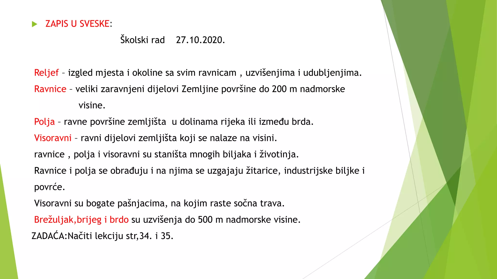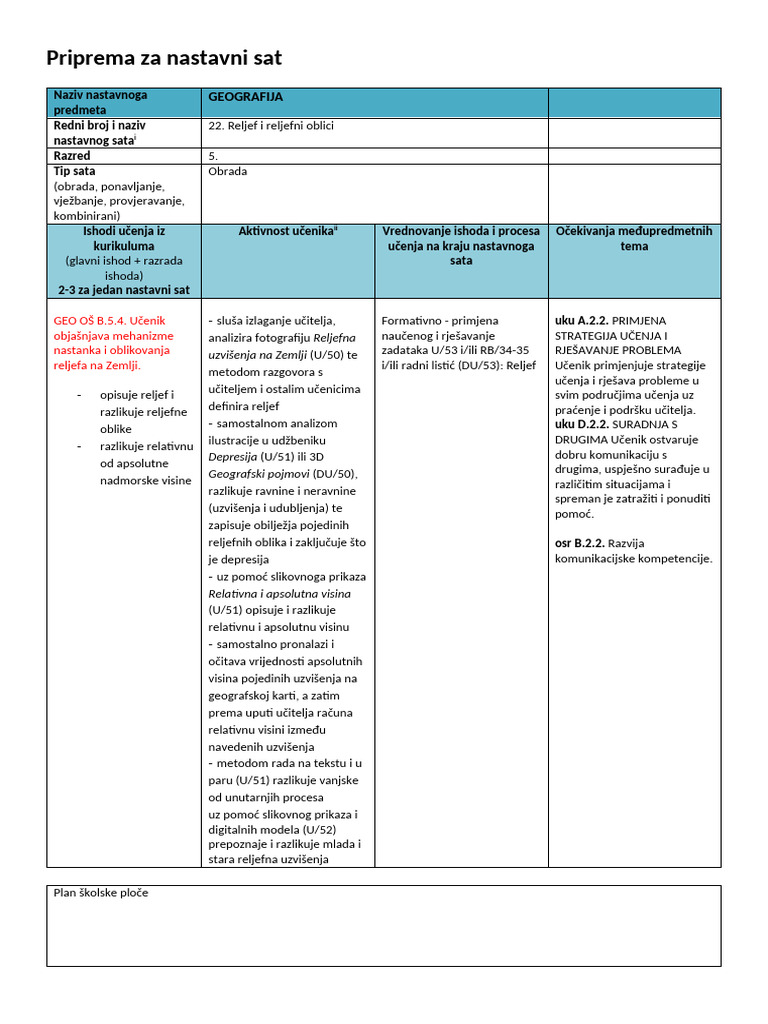 Geografija OŠ Kantrida Rijeka: RELJEF I RELJEFNI OBLICI - 5.r (plan ploče)
