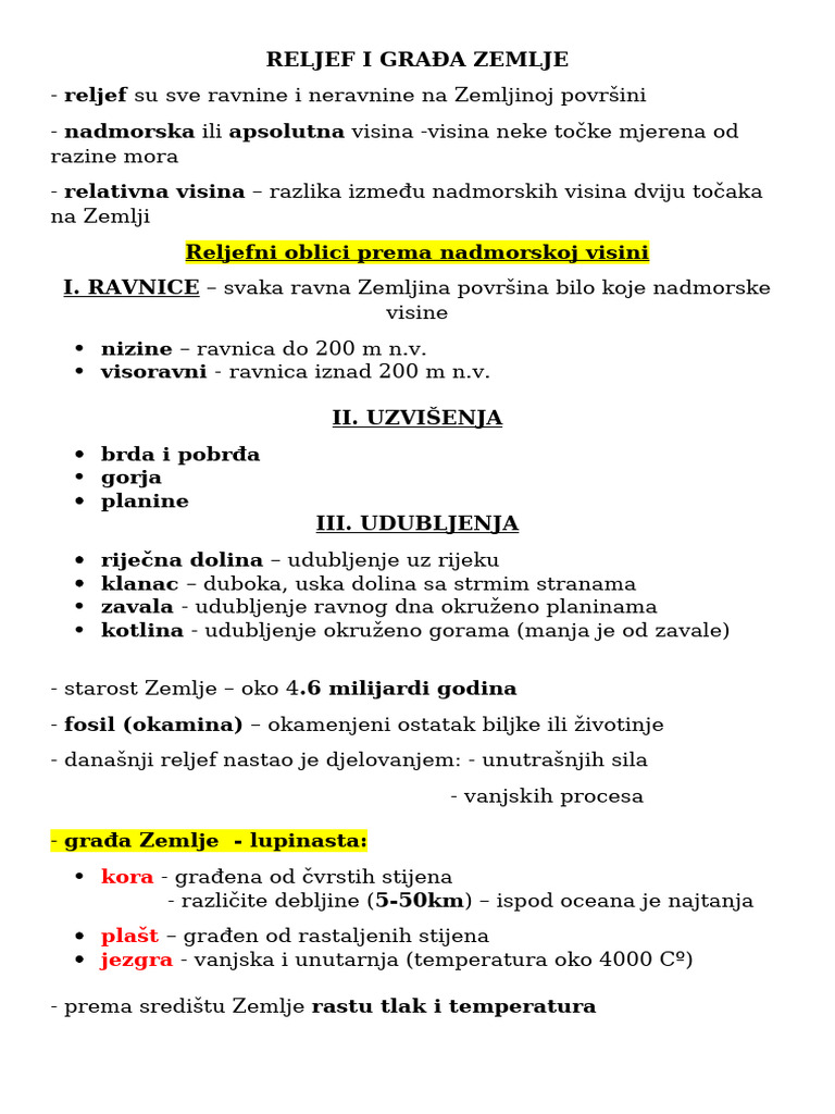 Geografija, Reljef | PDF