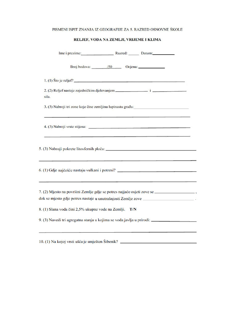 Test 5.razred RELJEF NA ZEMLJI | DOCX