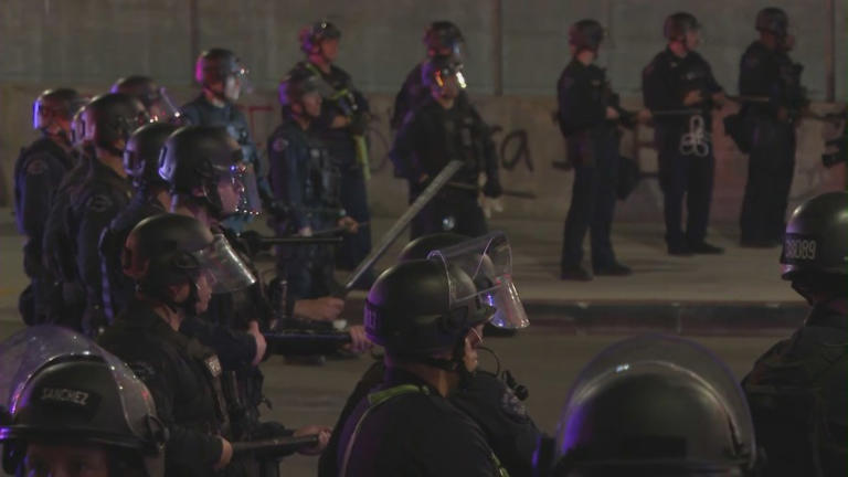 Police fire flash-bangs, rubber bullets at L.A. protesters
