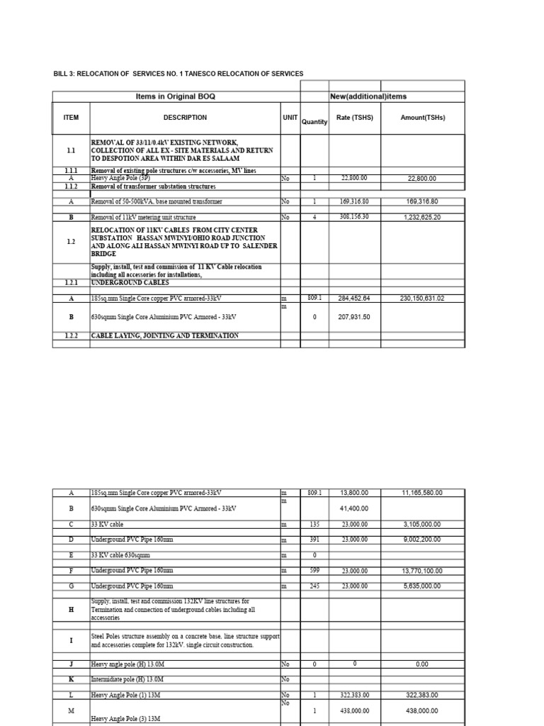 TANESCO Services Relocation Bill Summary | PDF | Manufactured Goods ...