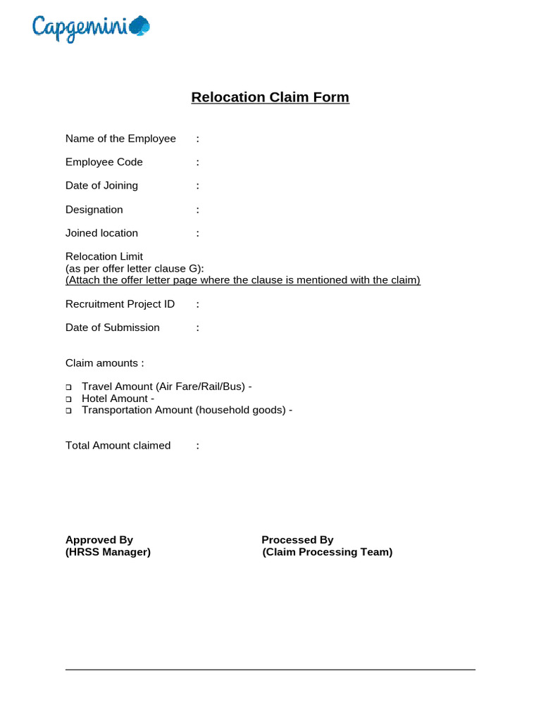 Relocation Claim Form | PDF | Finance & Money Management