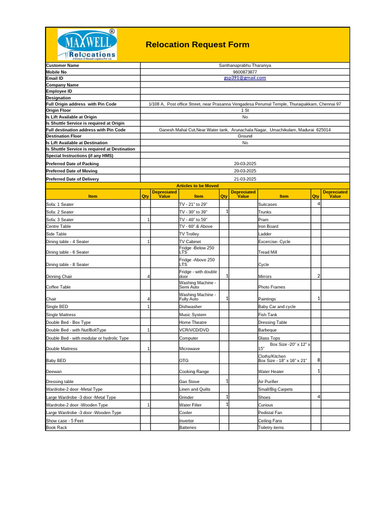 Employee Relocation Form Template | PDF | Bed | Kitchen