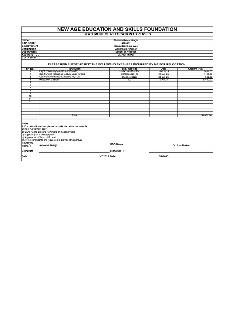 Relocation Expenses Reimbursement Request | PDF