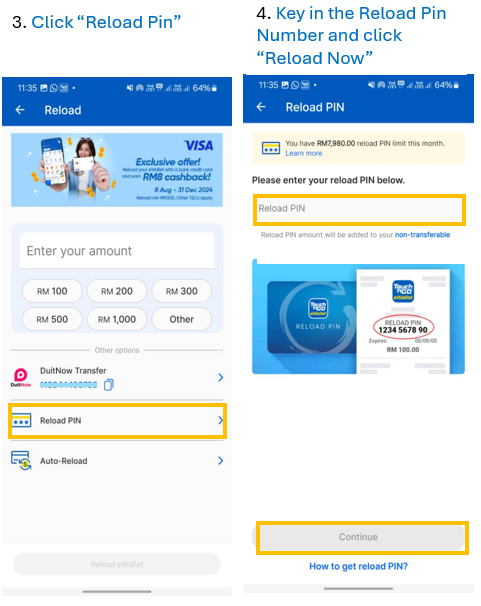 How to add money with Reload Pin – Touch 'n Go eWallet Help Centre