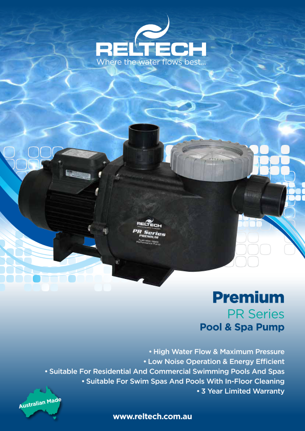 RELTECH PR125 PREMIUM RANGE 1.25HP SINGLE SPEED POOL PUMP – Dural Pool Shop