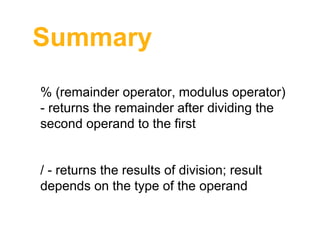 Assignment, Arithmetic, Remainder operators. Basic Operators Part 1.The ...