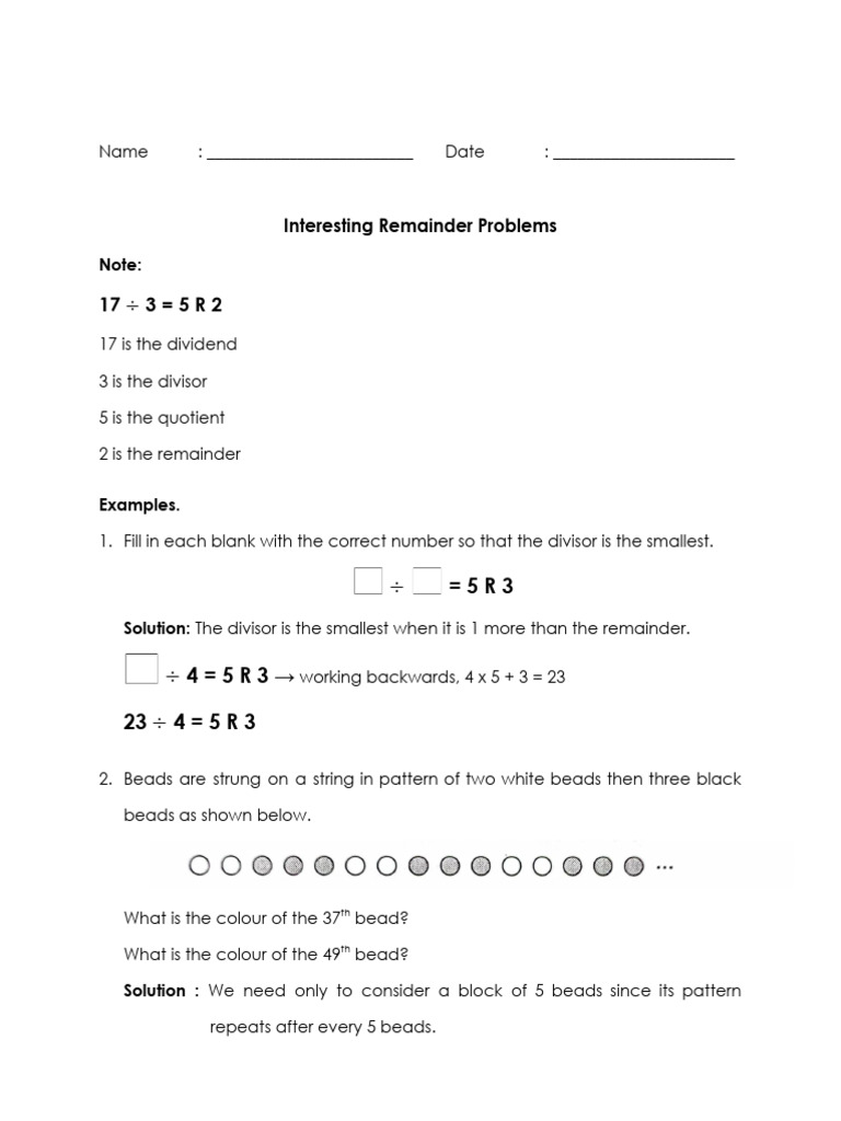 Remainder and Pattern Problems Guide | PDF | Division (Mathematics ...