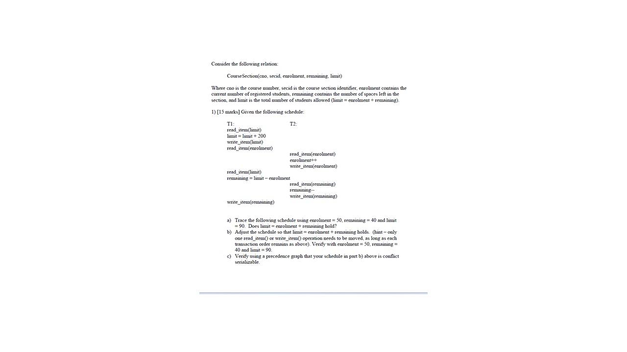 Solved Consider the following relation: CourseSection(cno, | Chegg.com