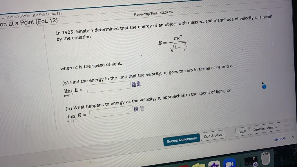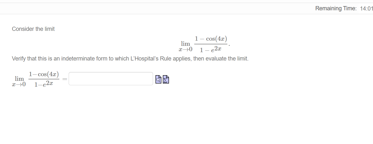 Solved Remaining Time: 14:01 Consider the limit | Chegg.com