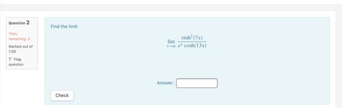 Solved Question 2 Find the limit lim The remaining Marked | Chegg.com
