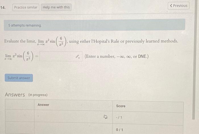 Solved 5 attempts remaining. Evaluate the limit, | Chegg.com