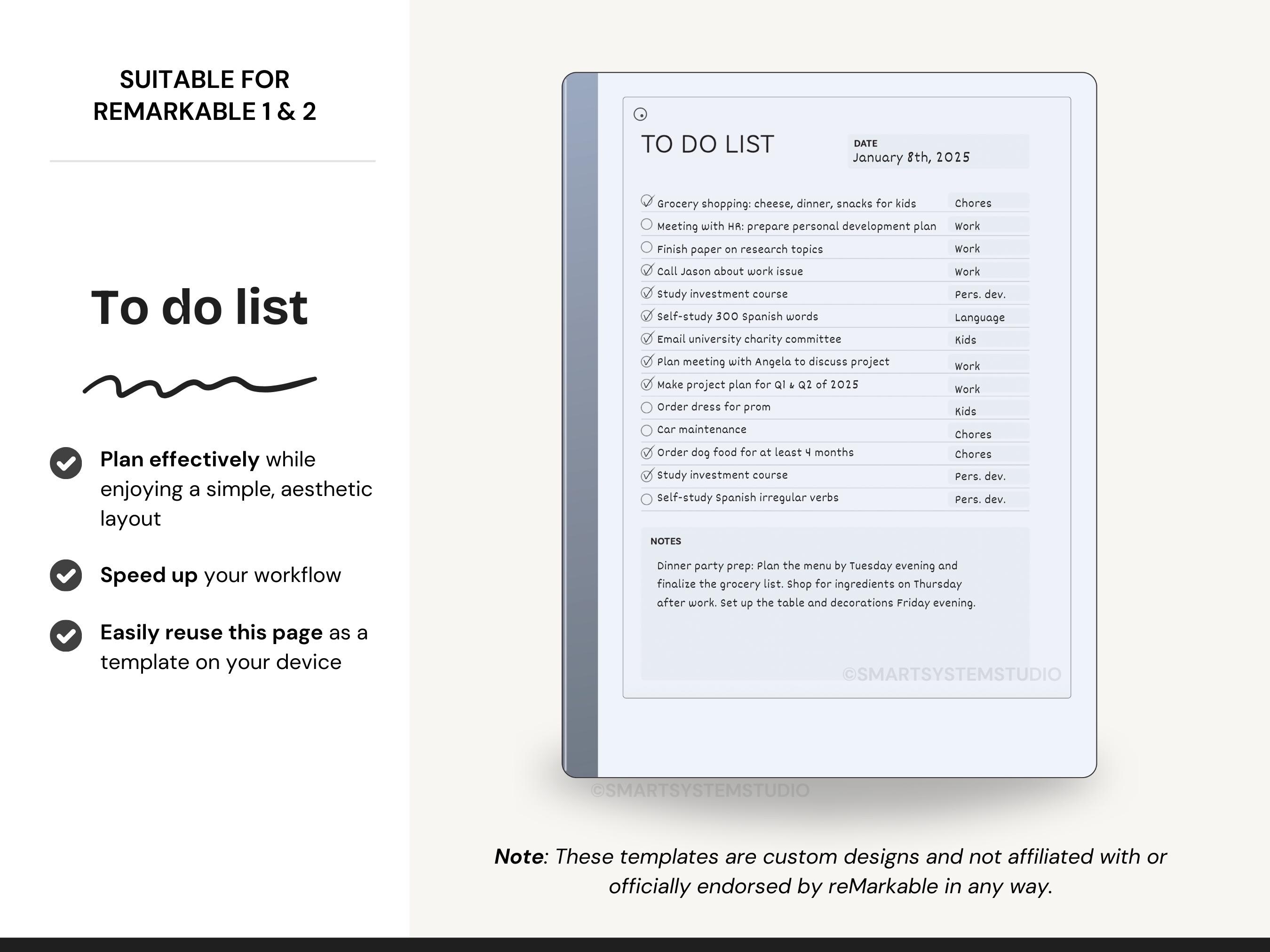 CHECKLIST | Remarkable 1 & 2 Template - Etsy